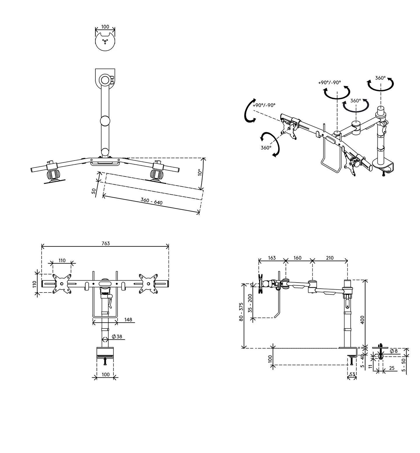 - Monitor: înclinare +90°/-90°, rotire 360°