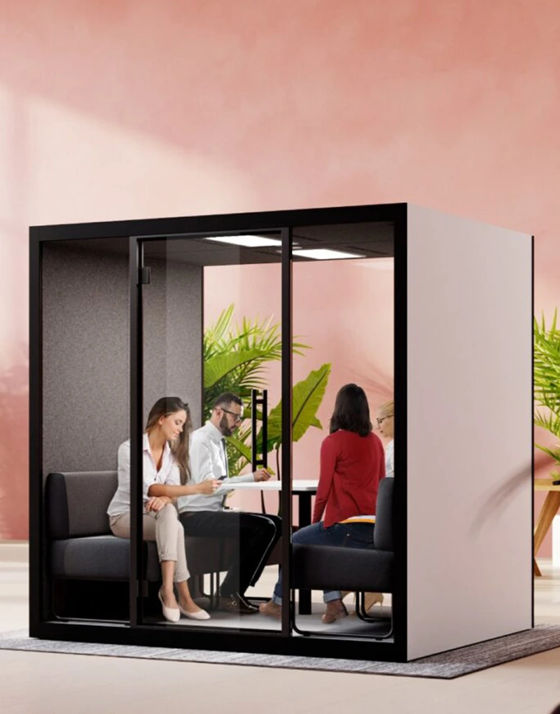 Această cabină este perfectă pentru situațiile în care două persoane trebuie să colaboreze sau să comunice fără distrageri cauzate de zgomotul ambiental — fără a afecta estetica spațiului de lucru.