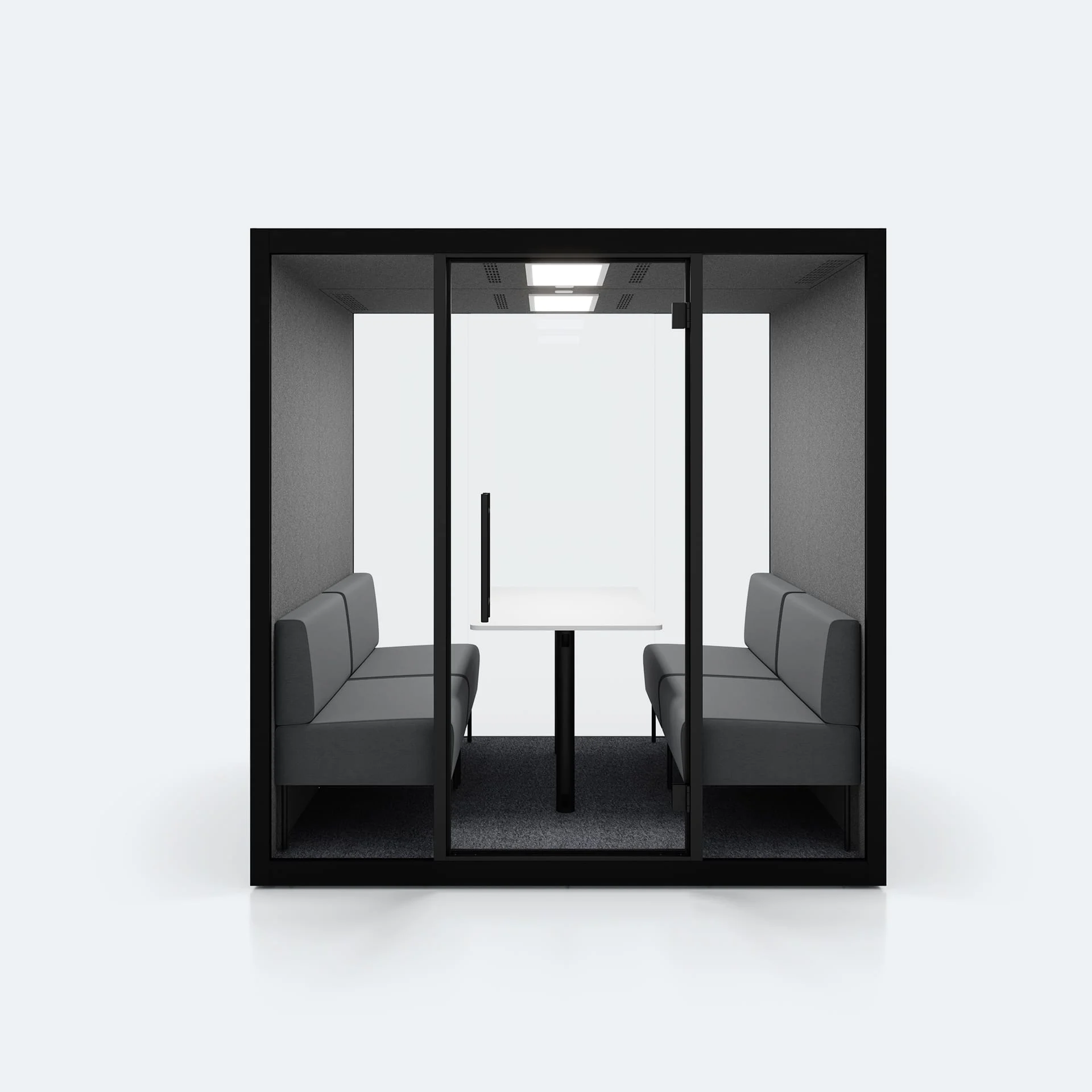 Silen Chatbox Quattro este o cabină acustică spațioasă și performantă, proiectată pentru a oferi un mediu liniștit și concentrat pentru până la patru persoane. Ideală pentru ședințe de echipă, videoconferințe, brainstorming și discuții colaborative, această soluție combină izolare fonică superioară, ventilație silențioasă și design ergonomic modern.