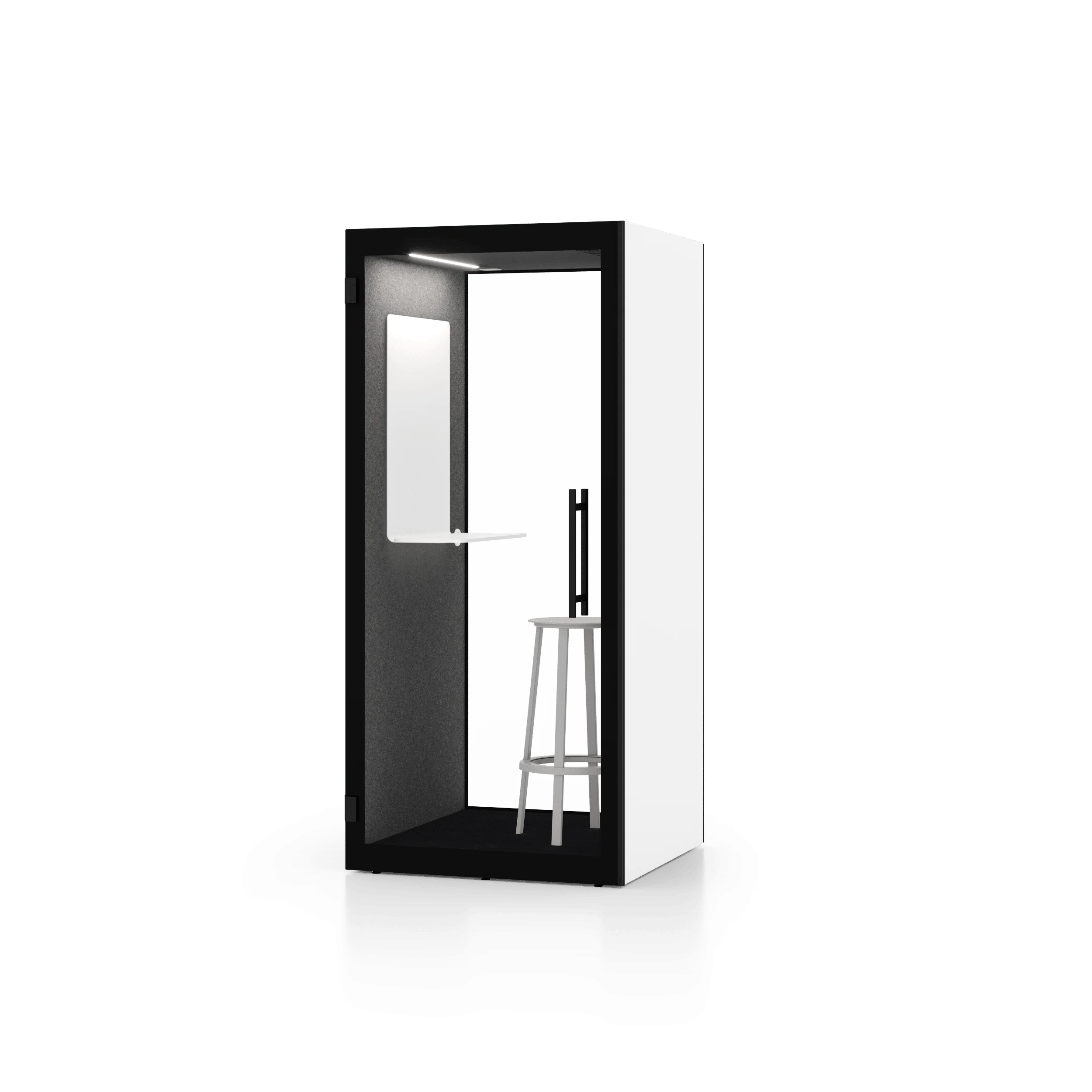 Această cabină este perfectă pentru situațiile în care două persoane trebuie să colaboreze sau să comunice fără distrageri cauzate de zgomotul ambiental — fără a afecta estetica spațiului de lucru.
