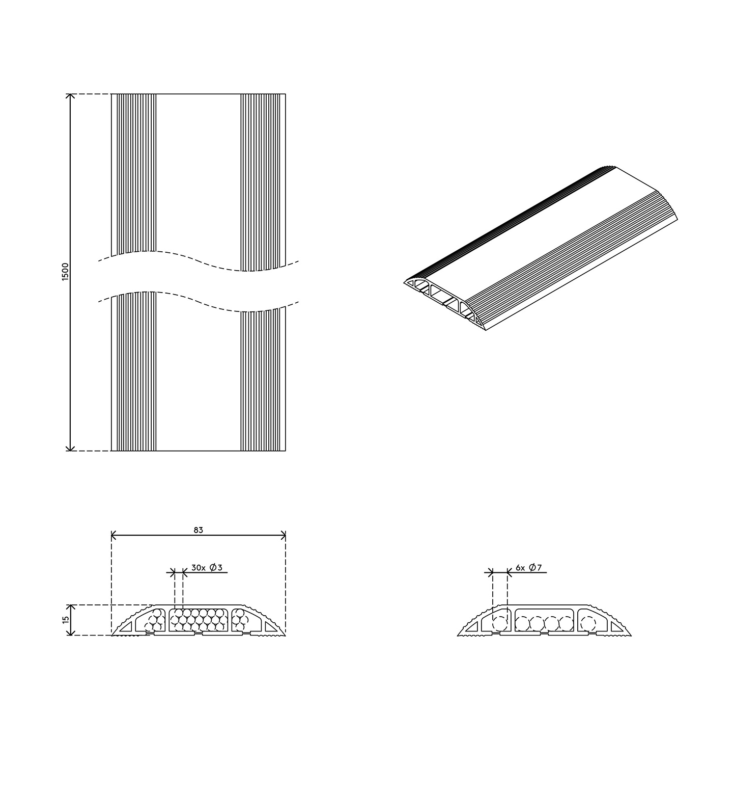 - Dimensiuni (lxLxh): 83 x 1500 x 15 mm (3,3 x 59,1 x 0,6″)