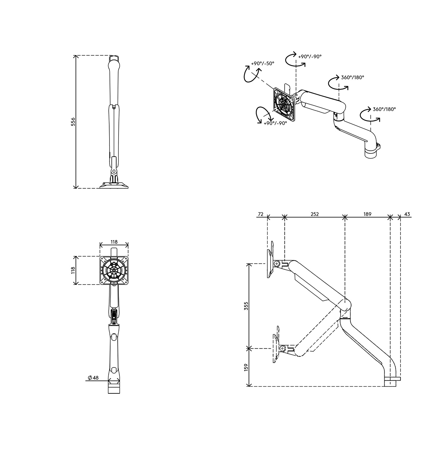 - Capabil de orientare portret și peisaj (rotație VESA de ±90º)