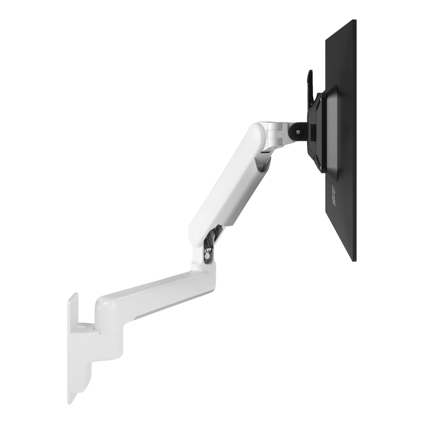 Optimizează spațiul de lucru cu acest braț pentru monitor montat pe perete. Ușor de utilizat și poate fi amplasat practic oriunde datorită blocării pivotante care elimină riscul de lovire de pereți sau birouri. Cablurile sunt ascunse perfect în brațul monitorului pentru un aspect profesional.
